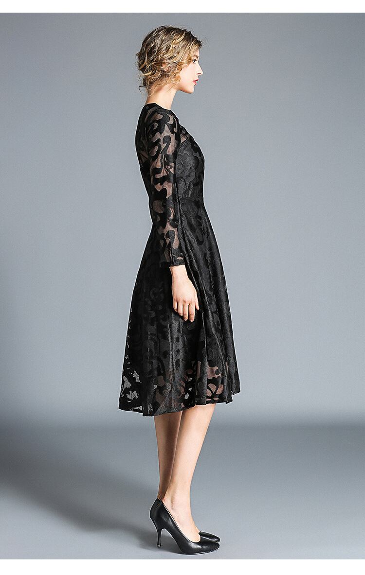 レース 刺繍 長袖 ドレス ワンピース パーティー 結婚式 二次会 女子会 謝恩会