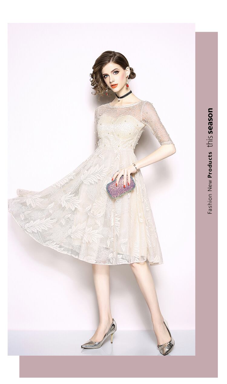 レース 刺繍 真珠 ボタニカル柄 ドレス ワンピース 五分丈 女子会 パーティー 謝恩会 お呼ばれ