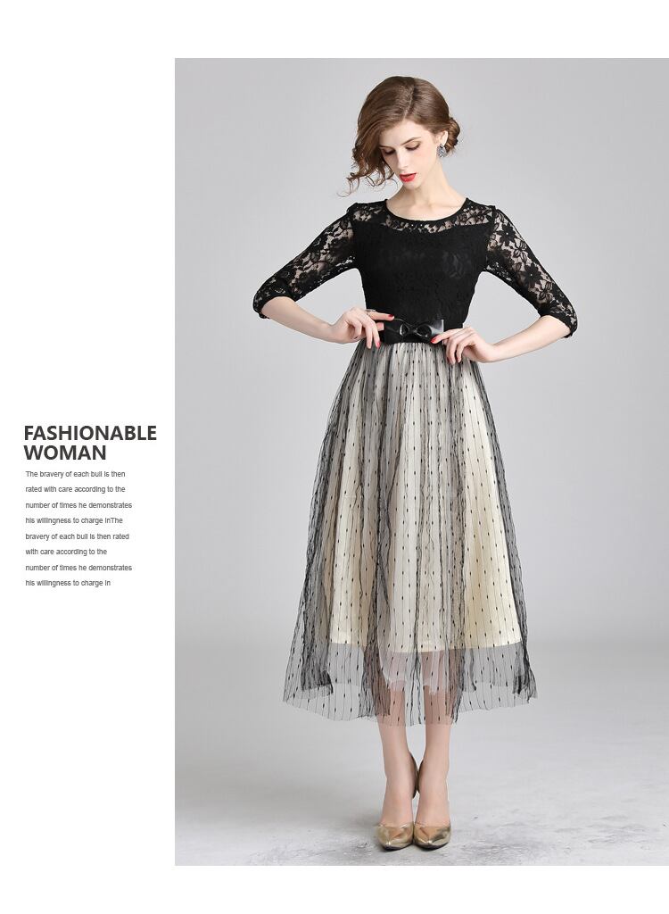 トップスは花柄の黒いチュール素材と白いワンピースと黒いドッド柄のチュール素材の重ねでクールなイメージ。