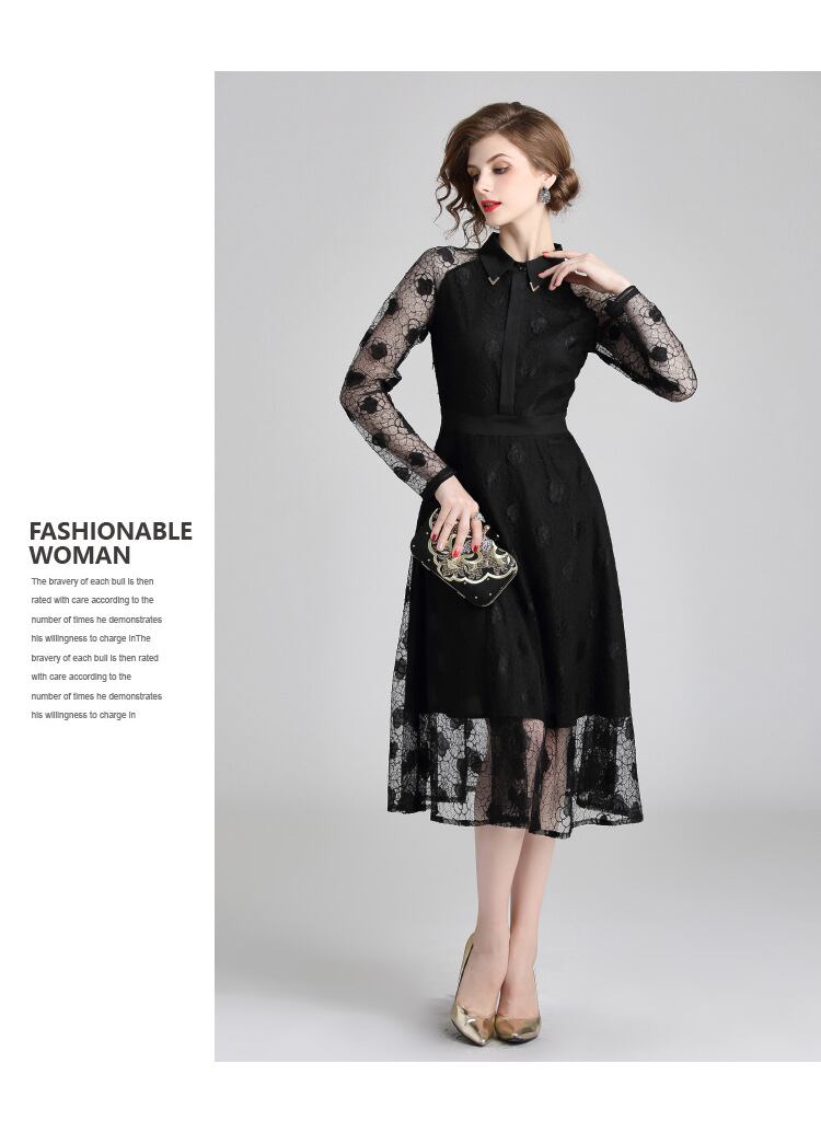 レース 刺繍 襟付き ドレス ワンピース 結婚式 二次会 パーティー ディナー 卒業式 謝恩会