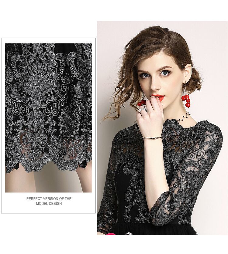 クラシック柄の刺繍をトップスとスカート裾にまとまっていて、ふんわりとしたドレスです。
