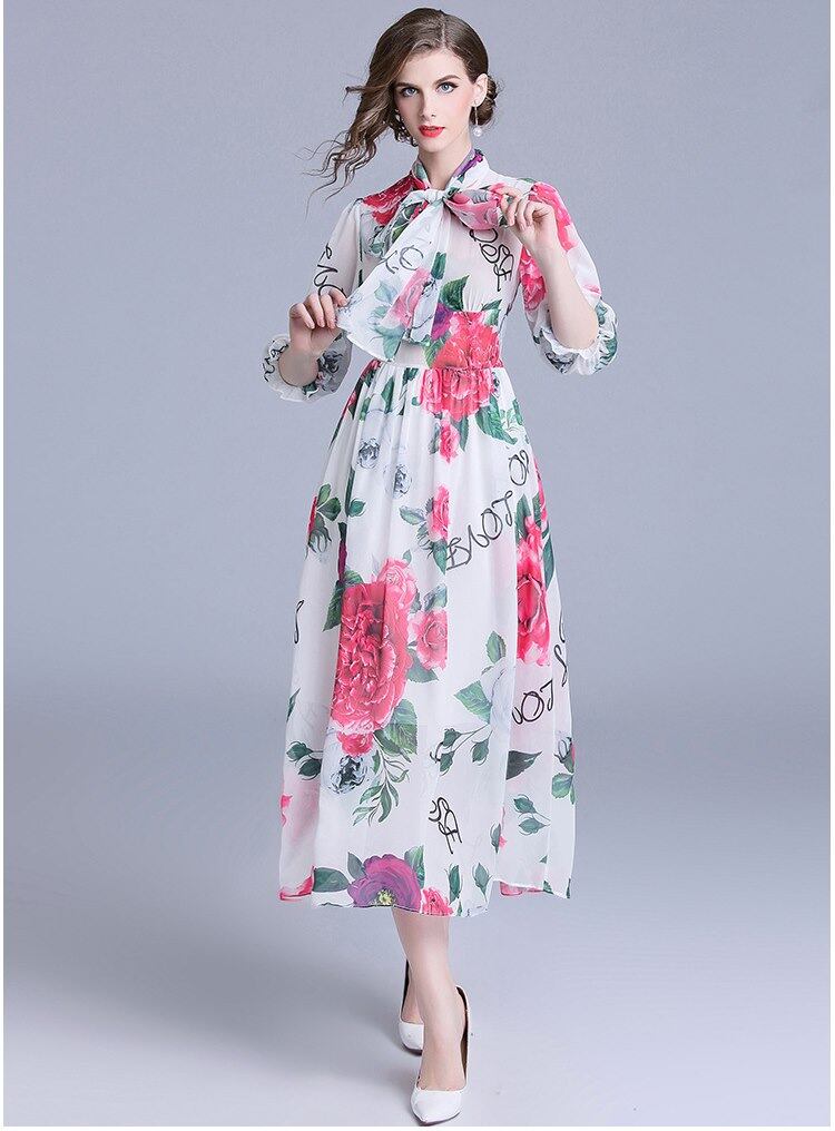 シフォン フラワープリント マキシ丈 リボン ロング ワンピース 二次会 デート 女子会 食事会