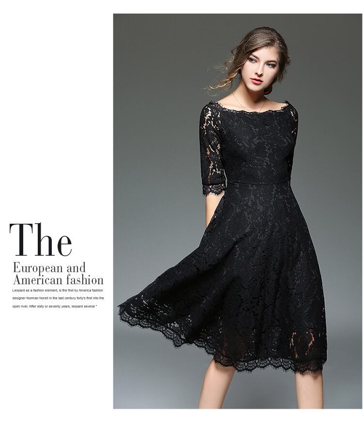 女性らしさを表現するよなフィットアンドフレアのレースドレス。