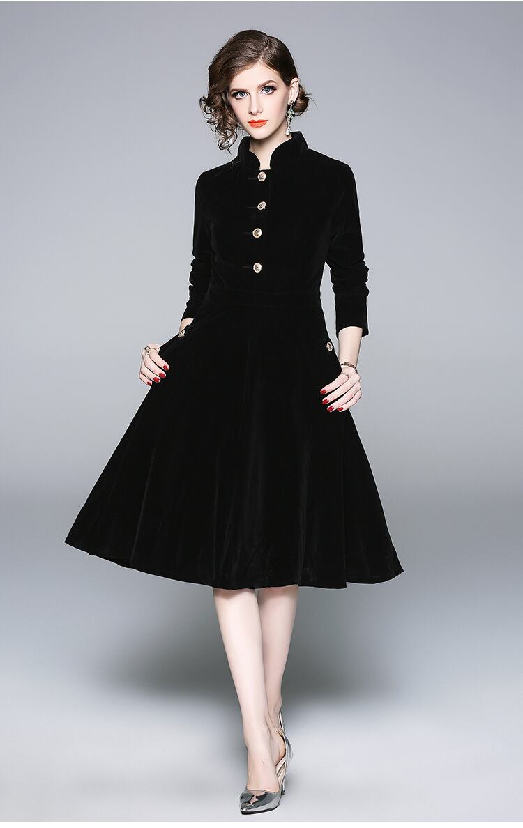 ベロア スタンドカラー レトロ 膝丈 ドレス ワンピース 結婚式 二次会 食事会 女子会 ディナー 卒業式 謝恩会 コンサート ZNYA0064 | 2019新作ドレス★onlythebestオンリーザベスト