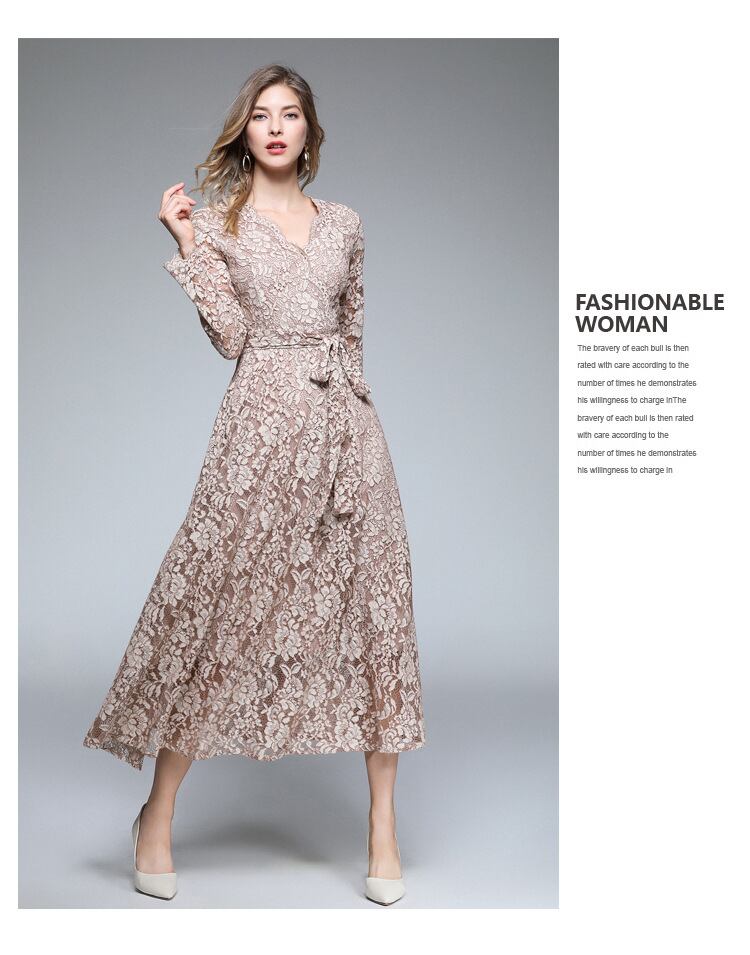 ドレス全体に花模様のレースがセレブリティーの様な華やぎを感じるワンピース。