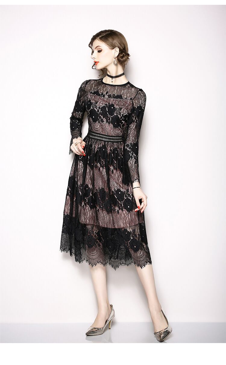 レース 刺繍 長袖 スプラットレースカット ドレス ワンピース 結婚式 二次会 パーティー ディナー 女子会 卒業式 謝恩会 コンサート