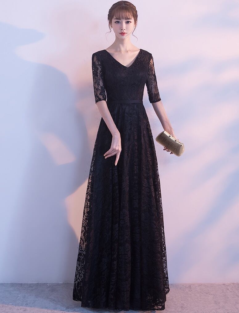 (duox-X0034) お得 Vネックレース ブラックロング丈ワンピース ドレス 披露宴 二次会 同窓会 パーティー お呼ばれ 謝恩会 演奏会 式典 コンサート | 2019新作ドレス★onlythebestオンリーザベスト