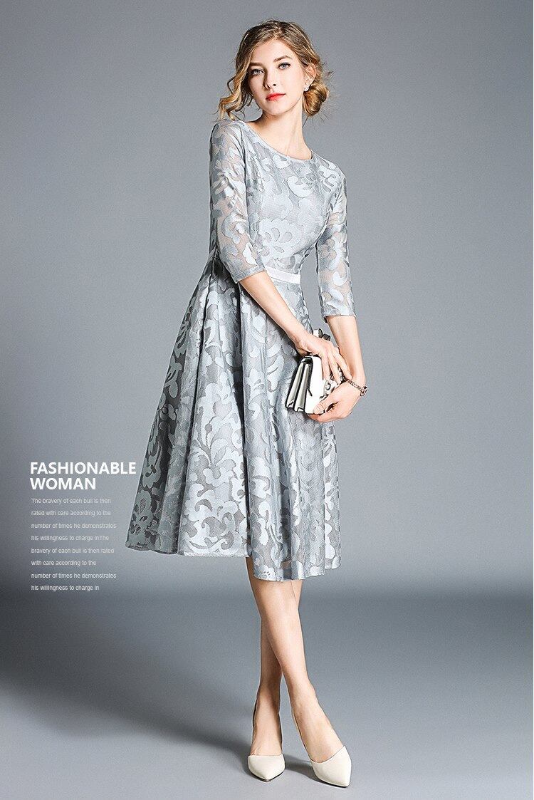 レース ドレス ワンピース 刺繍 七分丈 結婚式 二次会 お呼ばれ パーティー 女子会