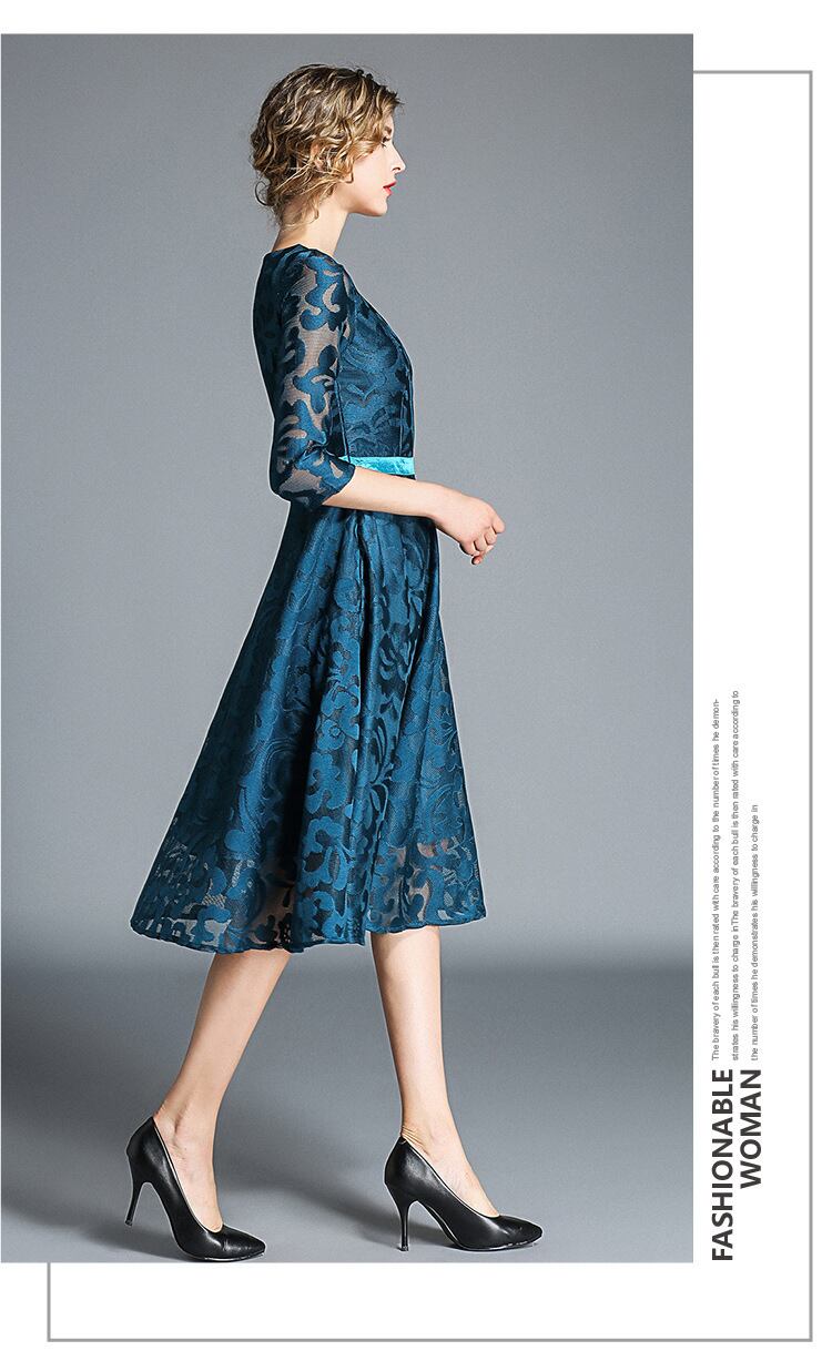 レース ドレス ワンピース 刺繍 七分丈 結婚式 二次会 お呼ばれ パーティー 女子会