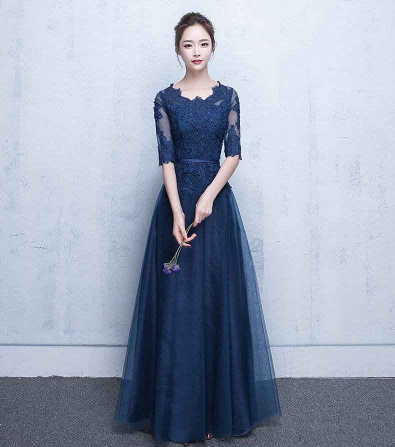 (hanlan-X0005) ネイビー 五分袖 結婚式 お呼ばれ ワンピース 20代 30代 40代 パーティードレス 二次会 大きいサイズ 親族 演奏会 フォーマル キャバ | 2019新作ドレス★onlythebestオンリーザベスト