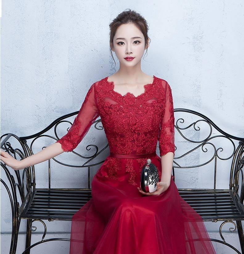 (hanlan-X0007) ワインレッド 五分袖 結婚式 お呼ばれ ワンピース 20代 30代 40代 パーティードレス 二次会 大きいサイズ 親族 演奏会 フォーマル キャバ | 2019新作ドレス★onlythebestオンリーザベスト