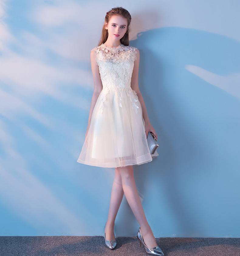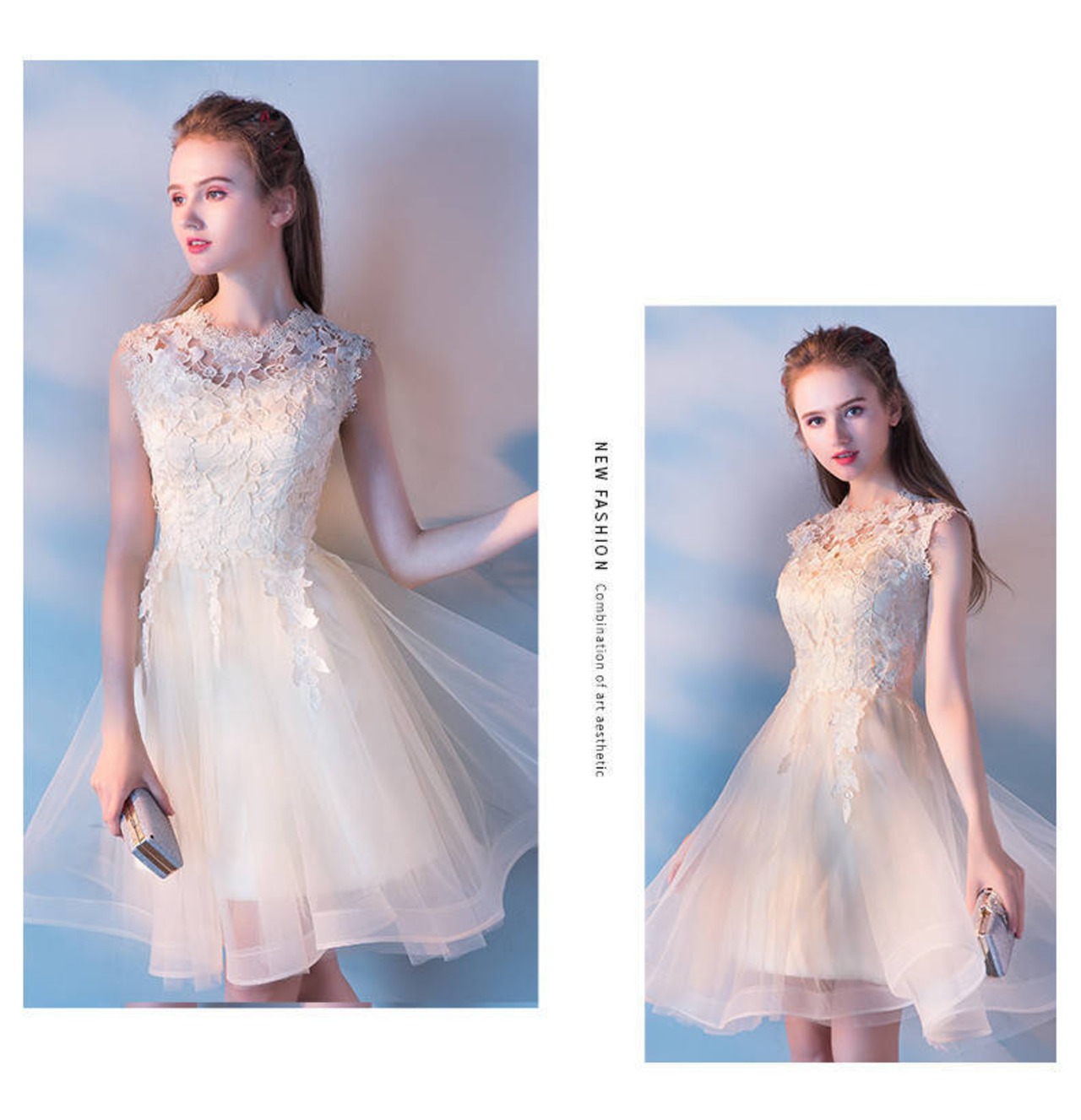 パーティードレス 結婚式 シャンパン ラウンドネック レース 二次会 謝恩会 披露宴 卒業パーティー 成人式