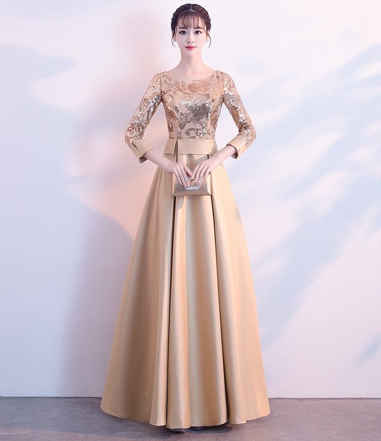 (duox-X0050) 大人気 ウンドネック ロング丈ゴールド ワンピース ドレス 披露宴 二次会 同窓会 パーティー お呼ばれ 謝恩会 演奏会 式典 コンサート | 2019新作ドレス★onlythebestオンリーザベスト