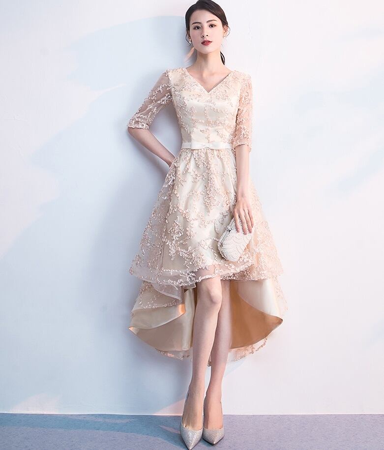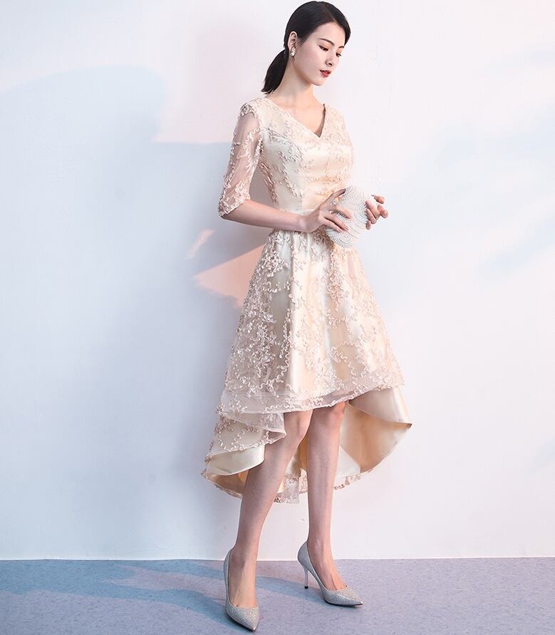 (duox-X0054) 高品質5分袖Vネック変形裾ワンピース ドレス 披露宴 二次会 同窓会 パーティー お呼ばれ 結婚式 謝恩会 演奏会 式典 コンサート | 2019新作ドレス★onlythebestオンリーザベスト