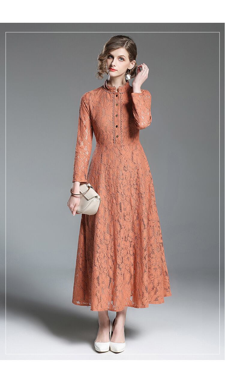 レース ドレス 刺繍 ワンピース 長袖 マキシ丈 スタントカラー 結婚式 二次会 パーティー 女子会