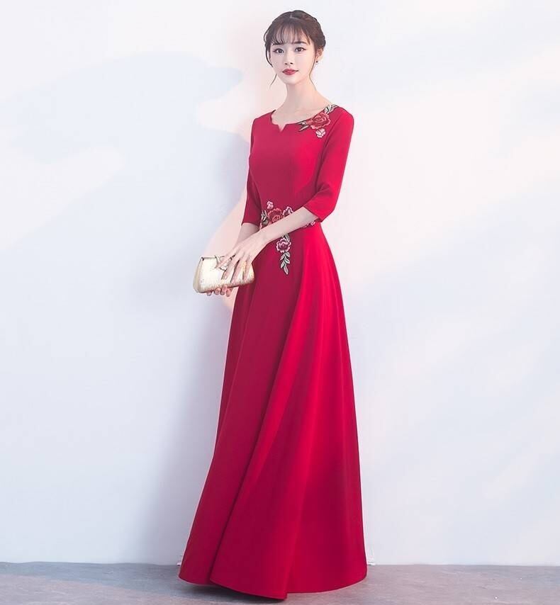 (hanlan-X0020) マキシ丈 ワンピース 結婚式 お呼ばれ 袖あり ロングドレス 演奏会 赤 20代 30代 40代 ステージ衣装 ドレス 二次会 大きいサイズ キャバ | 2019新作ドレス★onlythebestオンリーザベスト
