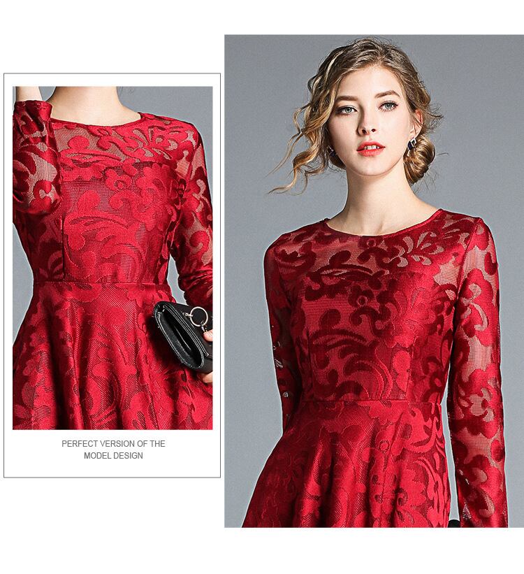 レース 刺繍 長袖 ドレス ワンピース パーティー 結婚式 二次会 女子会 謝恩会