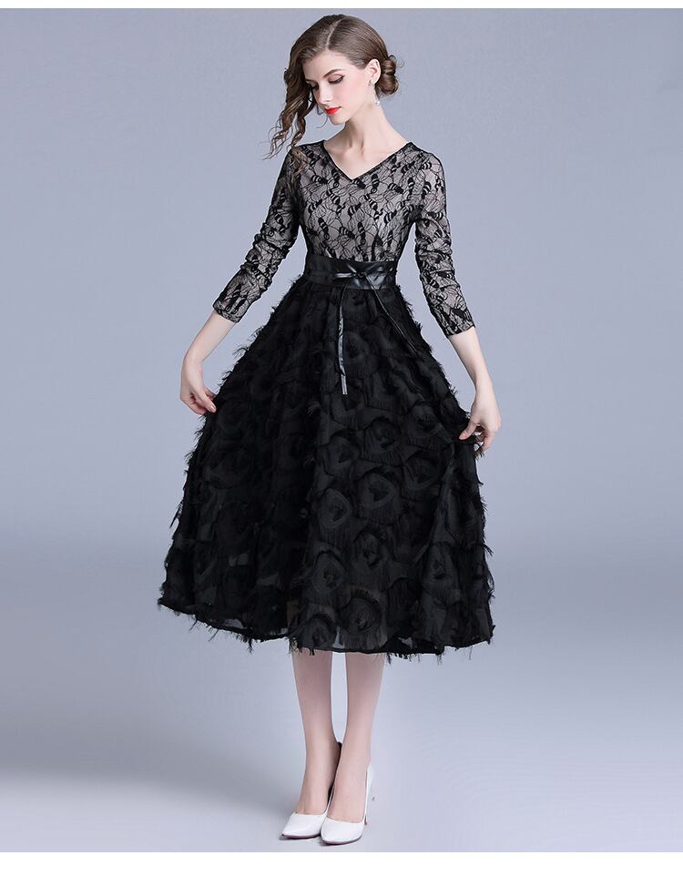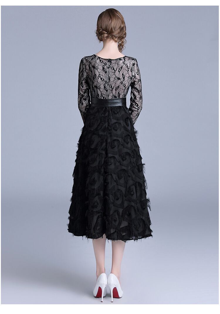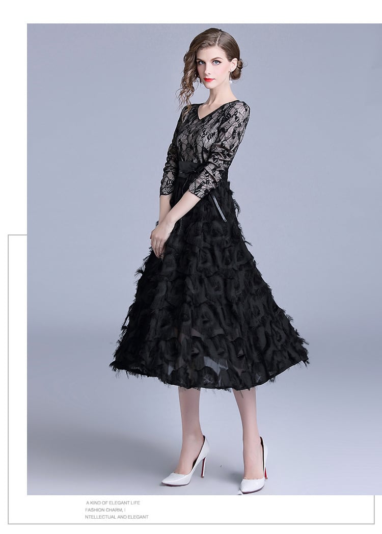 レース 刺繍 羽 ドレス ワンピース 7文丈 結婚式 二次会 ディナー パーティー 女子会