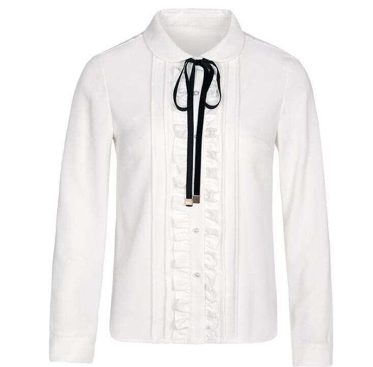 ・キーワード:リボン 可愛い ホワイト 長袖 2018年秋トレンド ブラウス
