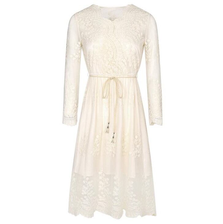 ・キーワード:レース フレア ミディアム丈 ホワイト ウェストシャーリング キレイ ドレス 2018年秋トレンド ワンピース
