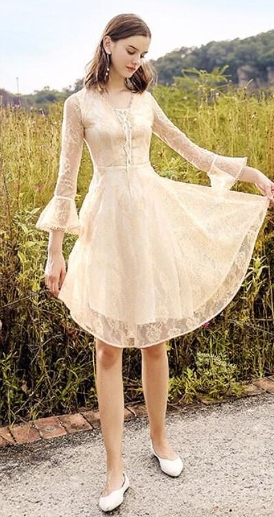 ・キーワード:レース 長袖 ミディアム丈 ドレス 華やか 2018年秋トレンド ワンピース