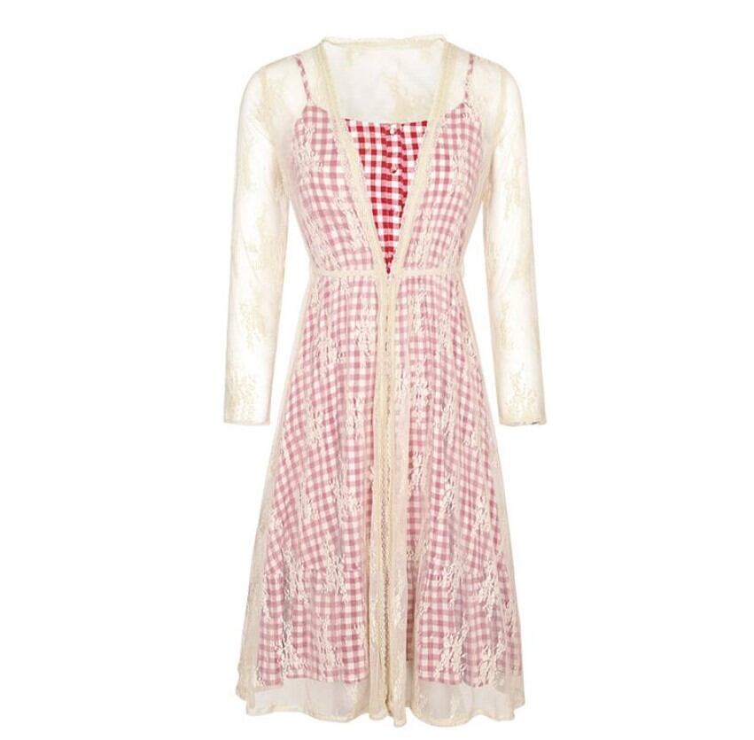 (pparis-X0056) レース 透け感 チェック ベージュ レッド ホワイト 可愛い フェス 野外コンサート 2018年秋トレンド ワンピース 2枚セット | 2019新作ドレス★onlythebestオンリーザベスト