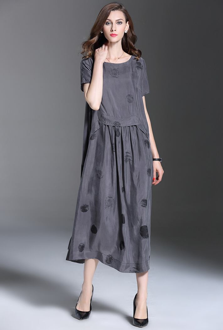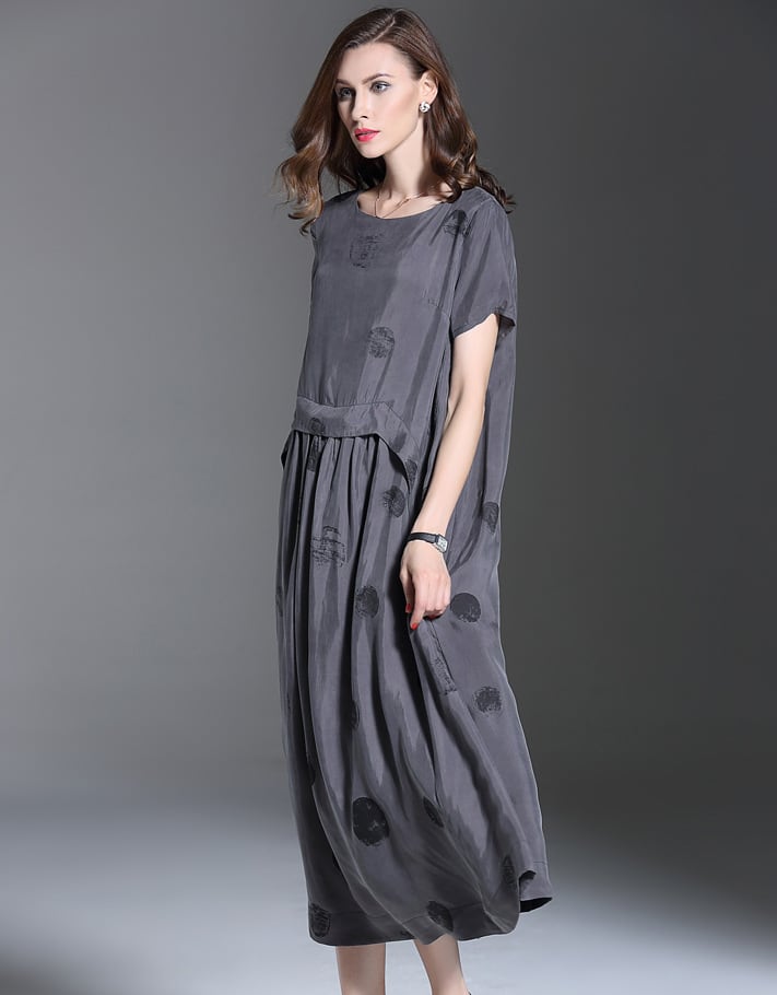 ドット ワンピース 半袖 ロングワンピース カジュアル 女子会 買い物 デート通勤