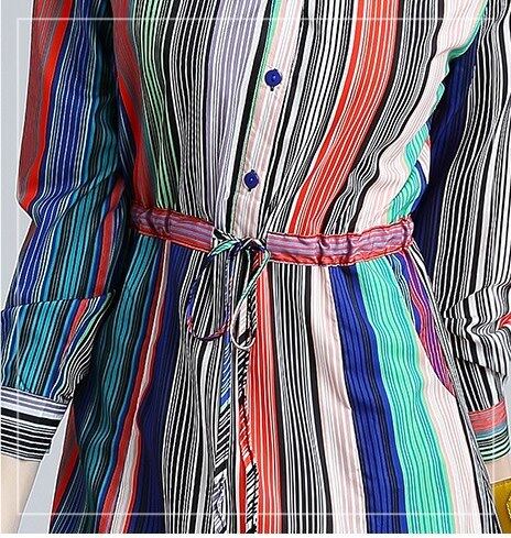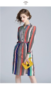 ストライプ カラフル シャツ ワンピース 膝上 通勤 デート