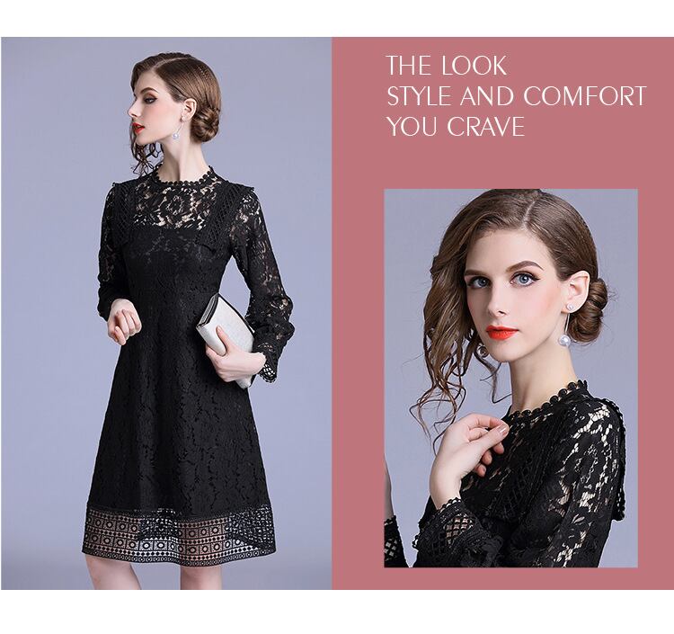 レース 刺繍 ドレス ワンピース 長袖 結婚式 二次会 パーティー ディナー 卒業式 謝恩会