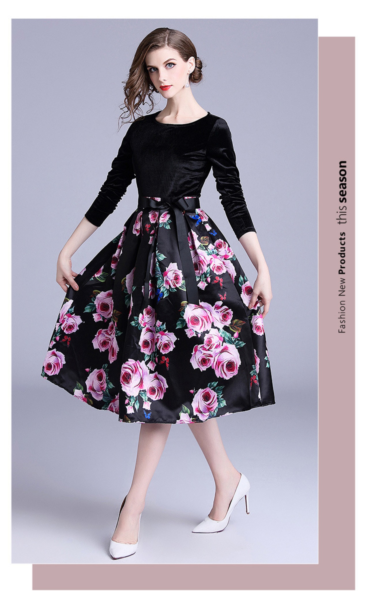 ベロア フラワーカット リボン ドレス ワンピース デート 通勤 女子会 卒業式 二次会