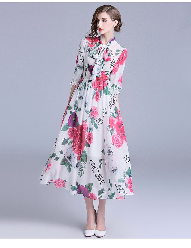 シフォン フラワープリント マキシ丈 リボン ロング ワンピース 二次会 デート 女子会 食事会