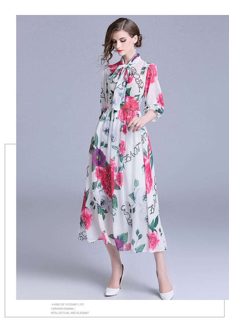 存在感のあるフラワープリントが周囲の視線を集めるワンピース。