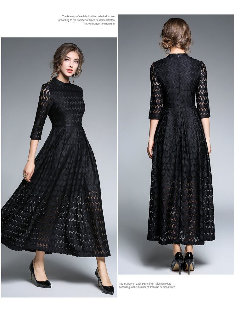 マキシ丈のフィットアンドフレアシルエットはエレガントのイメージに。