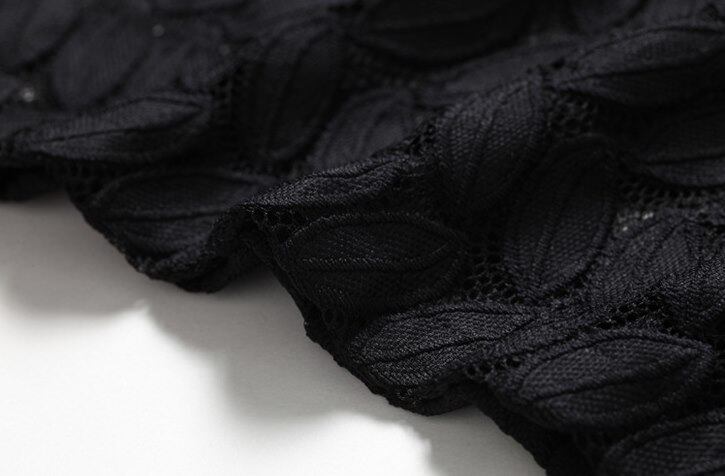 リーフモチーフをベースにボーダー柄に仕上げたレースドレス。