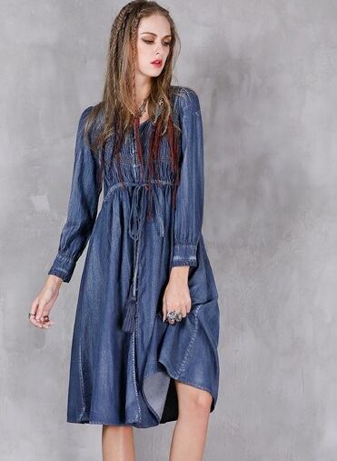 秋物デニムワンピース 2018トレンド レディース 刺繍入り ラウンドネック ブラウス ピンク 長袖 ボヘミアン デニム柄 ベルト付き Oネック Aライン マキシ ワンピース ブルー ノースリーブ フリンジ ボヘミアン ボヘミアン調 エスニック レトロ 刺繍ワンピ ボヘミアン柄 ガウン風ワンピ デニムワンピ 民族衣装 ヒッピースタイル ゴシックアイテム ほんのりダークファッション センシュアル ゴシック風コーデ センシュアル レトロファッション レトロコーデ ワンピース大好き クラシカルなフォルム コンシャス ラグジュアリー オールブラックでドレッシー ブラックのオールインワン ゴシック モノトーンコーデ 毒っ気 パープル 民族風 ヒッピー 映画女優 体型カバー 送料無料 おしゃれ 2018新作