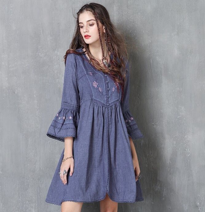 秋物デニムワンピース 2018トレンド レディース 刺繍入り ラウンドネック ブラウス ピンク 長袖 ボヘミアン デニム柄 ベルト付き Oネック Aライン マキシ ワンピース ブルー ノースリーブ フリンジ ボヘミアン ボヘミアン調 エスニック レトロ 刺繍ワンピ ボヘミアン柄 ガウン風ワンピ デニムワンピ 民族衣装 ヒッピースタイル ゴシックアイテム ほんのりダークファッション センシュアル ゴシック風コーデ センシュアル レトロファッション レトロコーデ ワンピース大好き クラシカルなフォルム コンシャス ラグジュアリー オールブラックでドレッシー ブラックのオールインワン ゴシック モノトーンコーデ 毒っ気 パープル 民族風 ヒッピー 映画女優 体型カバー 送料無料 おしゃれ 2018新作