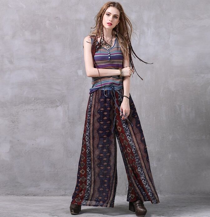 (knees-X0045) エスニック シルエットパンツ シフォン パンツ ワイドパンツ ワイドパンツ レディース ガウチョパンツ 花柄 | 2019新作ドレス★onlythebestオンリーザベスト