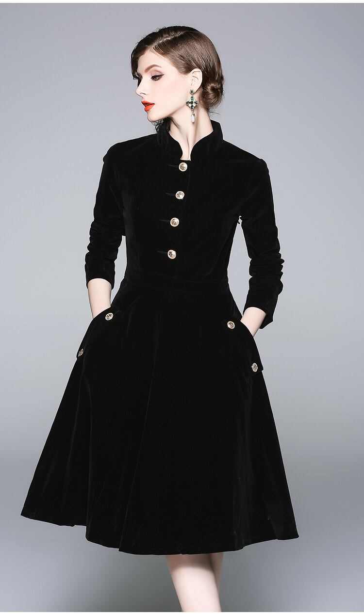 ベロア スタンドカラー レトロ 膝丈 ドレス ワンピース 結婚式 二次会 ディナー 女子会 卒業式 謝恩会 コンサート