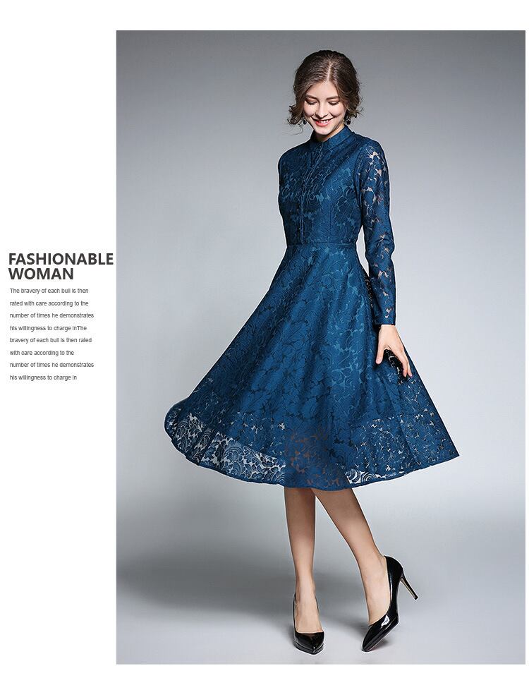 レース 刺繍 長袖 ロング ボタン付き スタンドカラー ドレス ワンピース 結婚式 二次会 パーティー ディナー 女子会 卒業式 謝恩会 コンサート