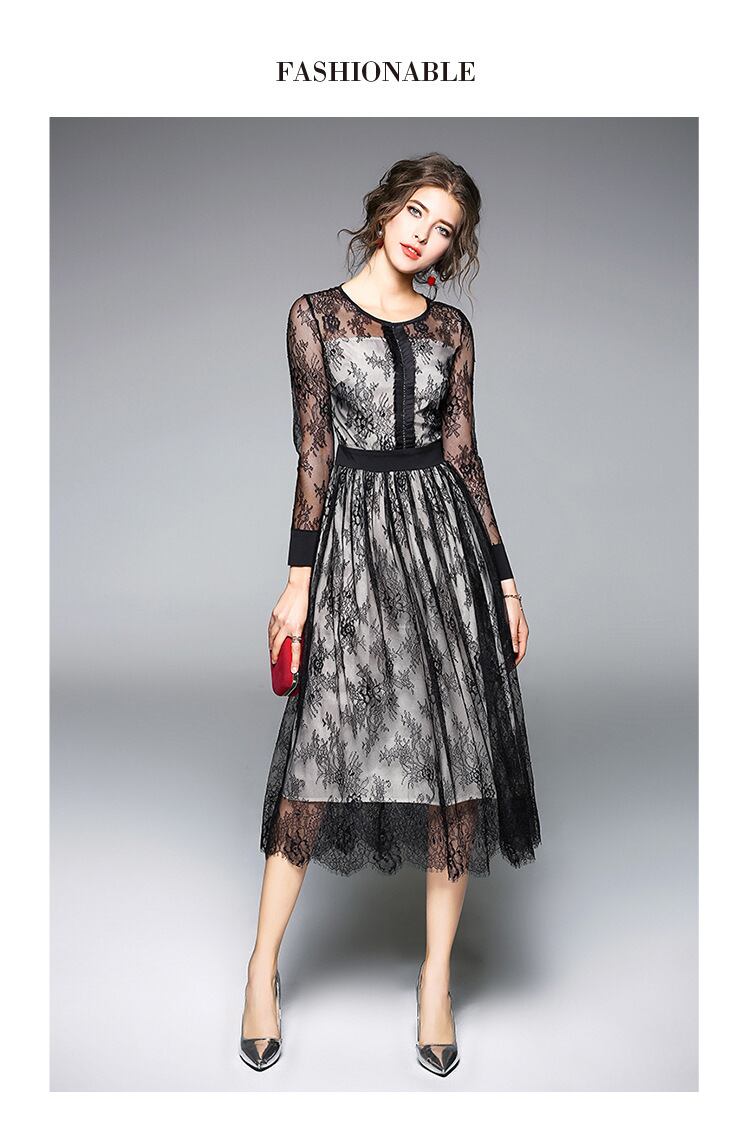 レース 刺繍 ロング 長袖 ドレス ワンピース 結婚式 二次会 パーティー ディナー 女子会 卒業式 謝恩会 コンサート
