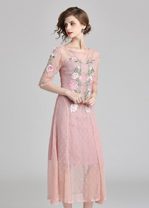 (aixi_X0027) 花柄 刺繍 ワンピース 結婚式 ドレス お呼ばれ ワンピース 袖あり 20代 30代 40代 パーティードレス 二次会 大きいサイズ 親族 演奏会 | 2019新作ドレス★onlythebestオンリーザベスト