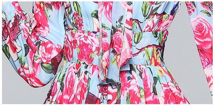 華やかな花柄プリントは万遍なく咲いているワンピースです。