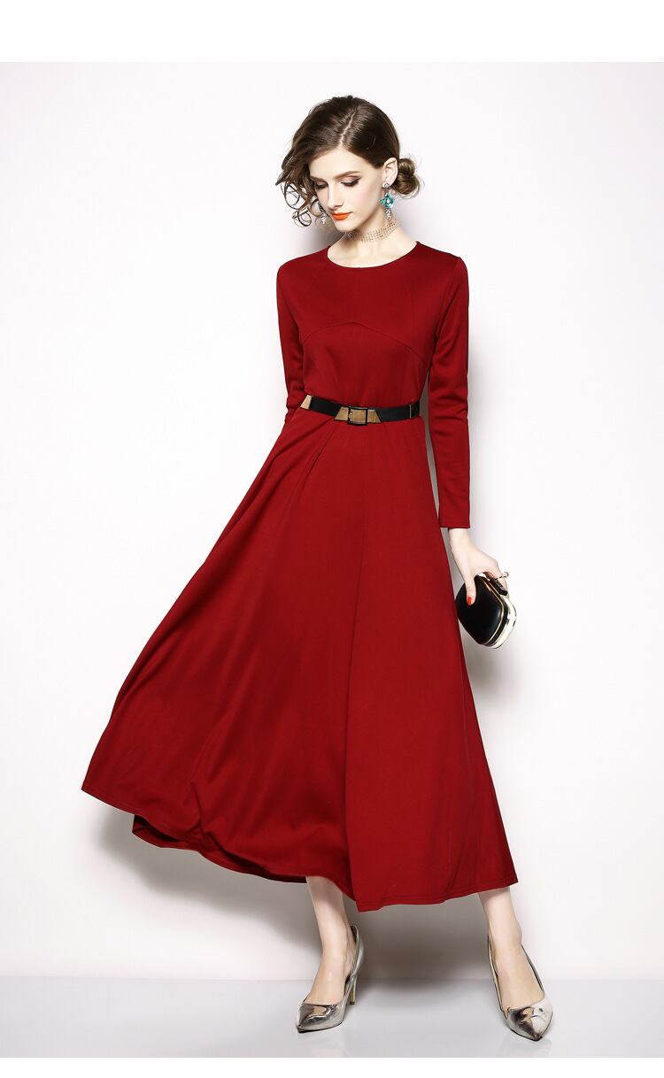 フレア マキシ丈 長袖 ベルト付き ロングワンピース ワンピース ドレス 結婚式 二次会 ディナー 女子会 食事会 パーティー 卒業式 謝恩会 コンサート 発表会 秋 秋夏 秋冬 冬 ランチ 足長効果 着痩せ効果ヨーロッパ風 L XL XXL XXL