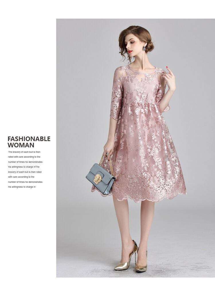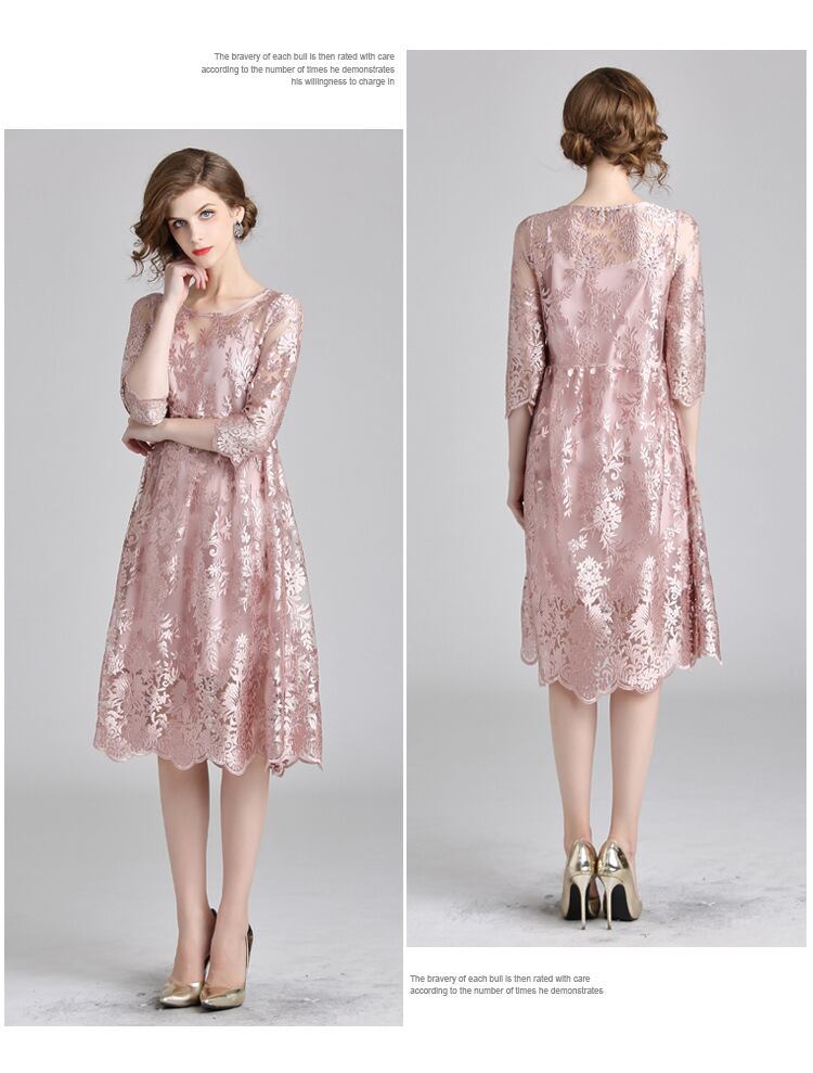 レース 刺繍 五分丈 膝下 ドレス ワンピース 結婚式 二次会 パーティー ディナー 女子会 食事会 卒業式 謝恩会 コンサート 発表会 お呼ばれ セレモニー デート 秋 夏 足長効果 ピップカバー ヨーロッパ風 L XL XXL XXL
