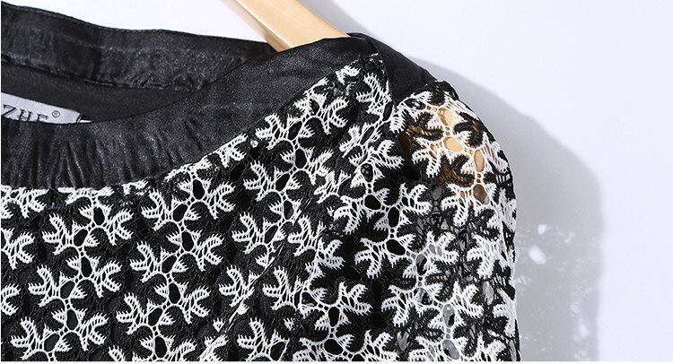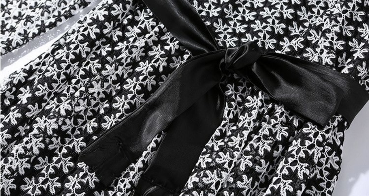 黒いレース生地に白い花刺繍のモノトーンワンピース。