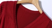 ディープのVネックがデコルテを綺麗に見せるニット素材ワンピース。