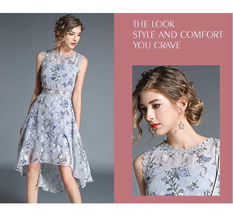 シフォン 花柄 プリント ノースリーブ テールスカート 足長効果 ワンピース デート 女子会 通勤 食事会 ランチ ディナー 秋 夏 春 膝上 L XL 2XL 20代 30代