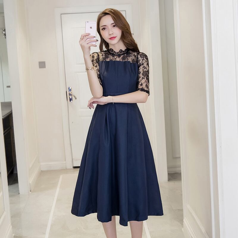 ドレス パーティードレス レース ハイネック 膝丈ドレス ミモレ丈ドレス ウエスト切り替え フレアドレス シンプル フォーマル 上品 清楚 大人可愛い ベーシック オールシーズン 結婚式 二次会 パーティー イベント セレモニー ディナー 海外 ノーブランド◆必ずお読みください◆