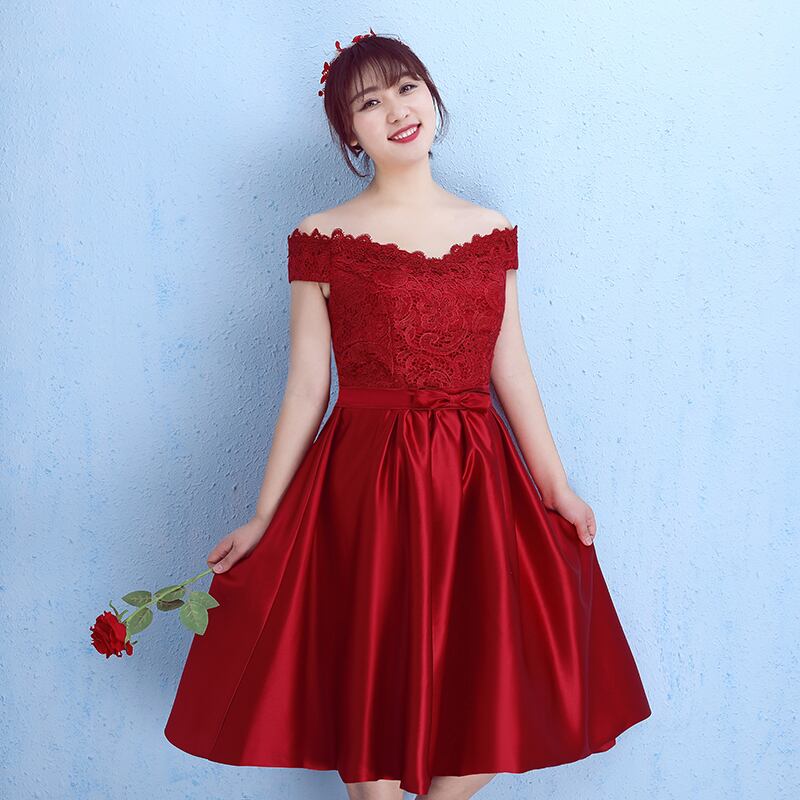 レース 刺繍 オフショルダー 膝丈 スバコールドレス パーティードレス 結婚式 披露宴 パーティー 演奏会 コンサート 発表会 お呼ばれ スピンドル 調節可能 着痩せ効果 足長効果 春 夏 秋 冬 大きいサイズあり XL 2XL 3XL 4XL 5XL キャバ 親族 レースアップ