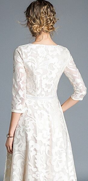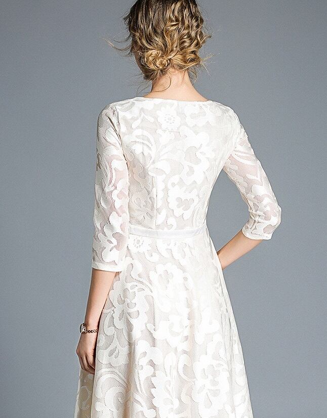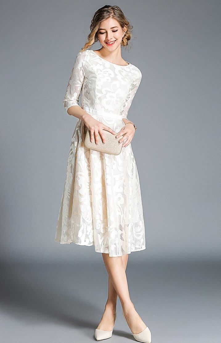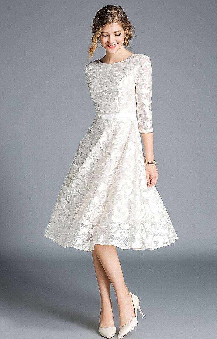 (aixi_X0036) パーティードレス ミモレ丈 袖あり 結婚式 ドレス お呼ばれ ワンピース 30代 20代 40代 披露宴パーティドレス 二次会 フォーマル 白 | 2019新作ドレス★onlythebestオンリーザベスト